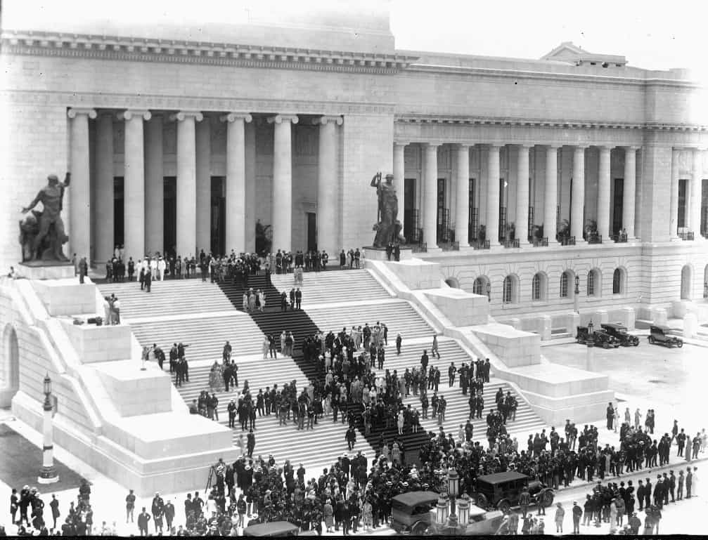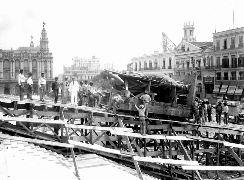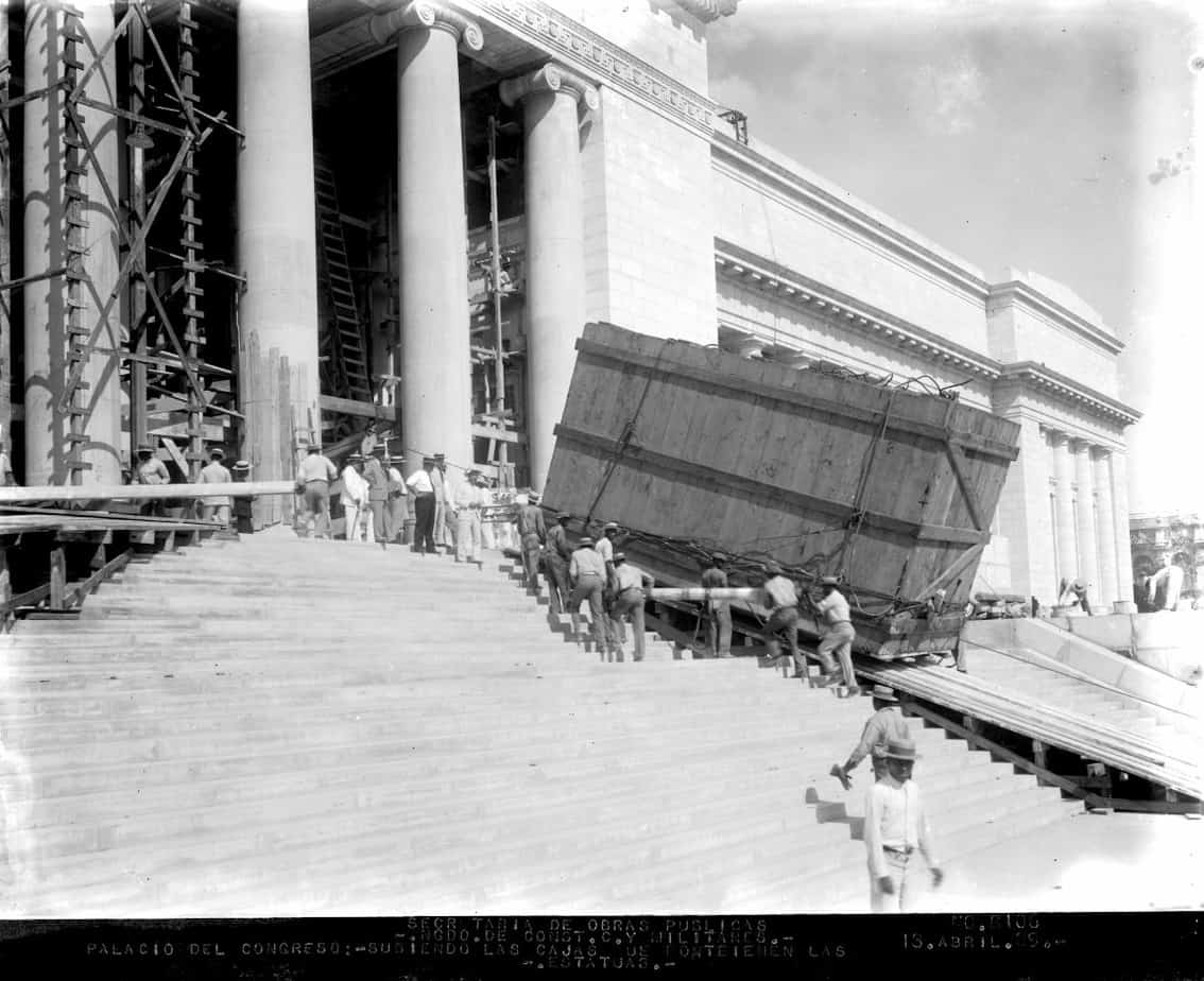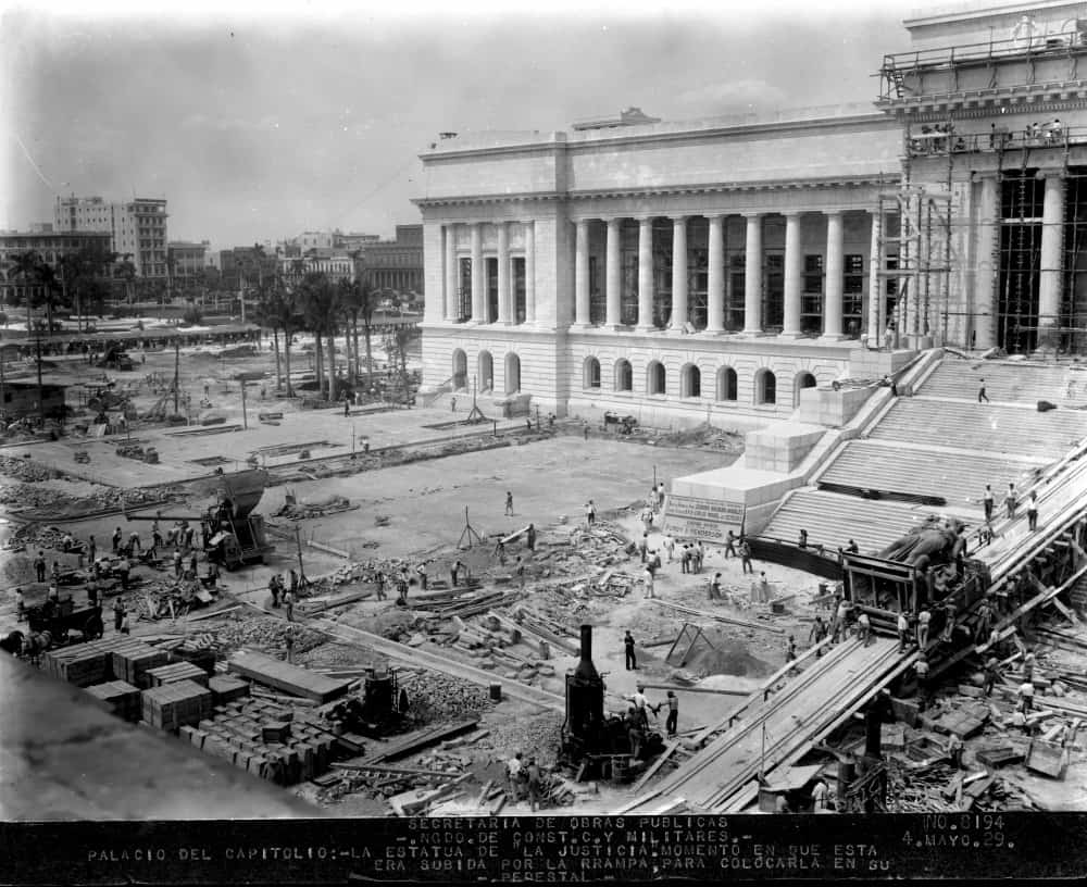 Subida de la estatua de la Justicia por rampa en escalinata. Capitolio. 1929