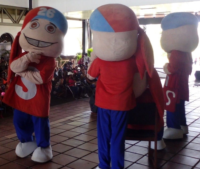 Se les encuentra en toda la ciudad. Abrazan a los niños, dan la mano a los adultos, posan para la foto. No se les ve la cara; todos tienen un rostro común: un atuendo los disfraza de Chaguito.