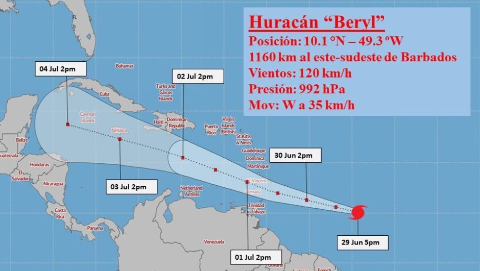 Durante las últimas horas la Tormenta Tropical Beryl continuó ganando en organización e intensidad en aguas del Atlántico tropical convirtiéndose en la tarde de hoy en el primer huracán de la actual temporada ciclónica.